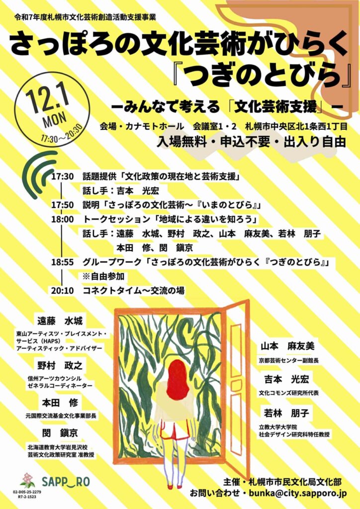 🚪札幌市市民文化局文化部「さっぽろの文化芸術がひらく『つぎのとびら』」ーみんなで考える文化芸術支援ー12/1(月)17:30-20:30